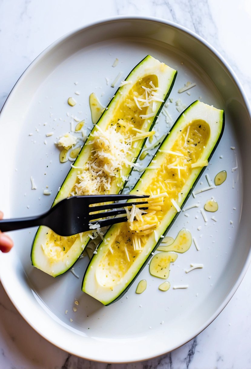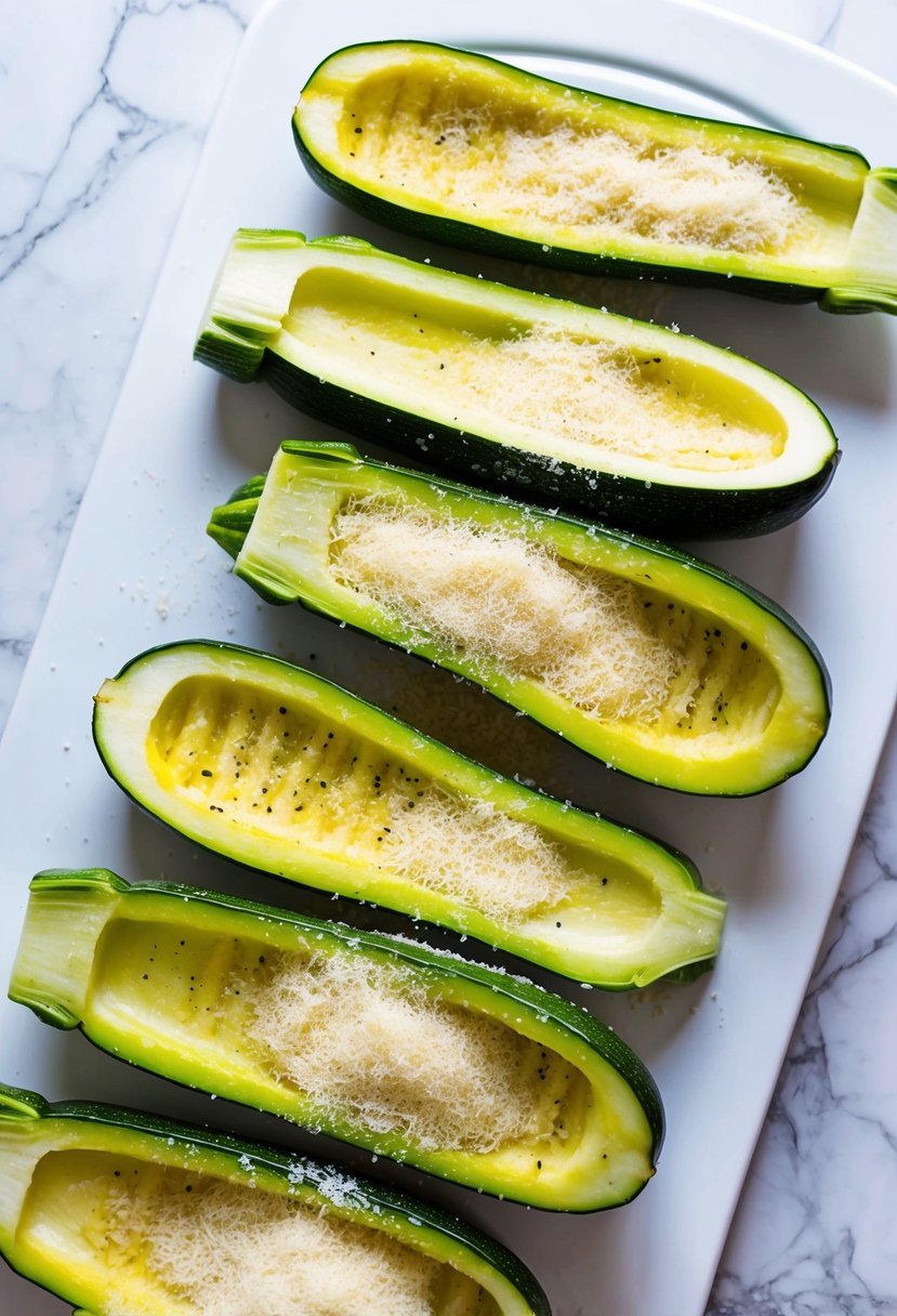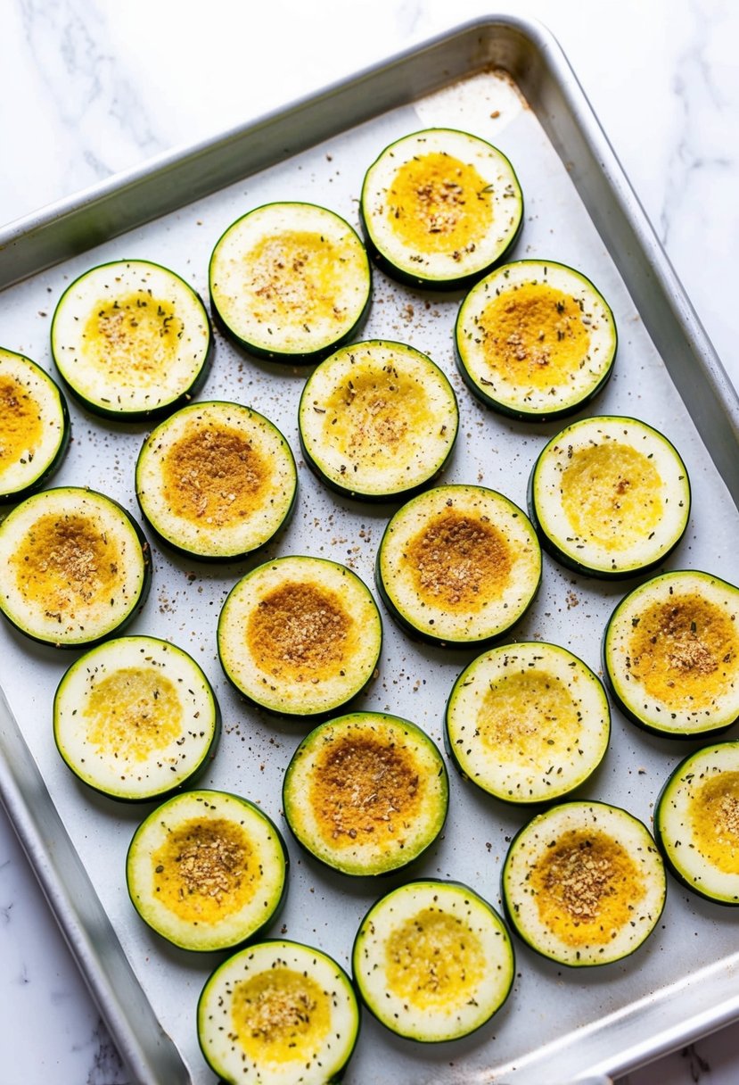 Arrange the zucchini on a baking sheet and bake at 400°F (200°C) for about 20 minutes. You can sprinkle with Parmesan cheese for extra flavor during the last few minutes of baking.