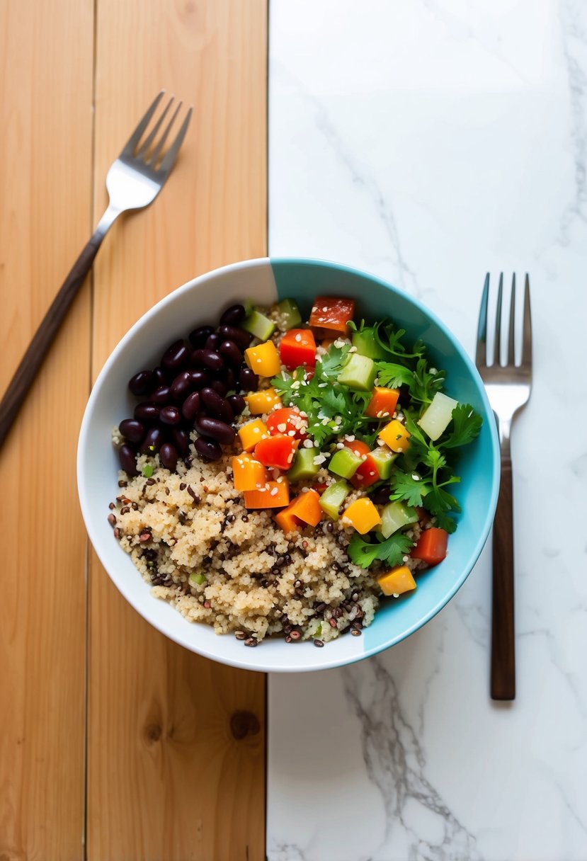 Quinoa and black bean salad is a quick and healthy lunch option. It’s packed with protein and fiber, making it satisfying. You can enjoy it cold and easily prepare it ahead of time.