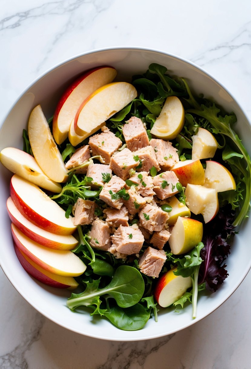 To make this salad, you will need canned tuna, diced apples, and some dressing. You can use mayonnaise or Greek yogurt for a healthier twist. Add some celery for extra crunch.