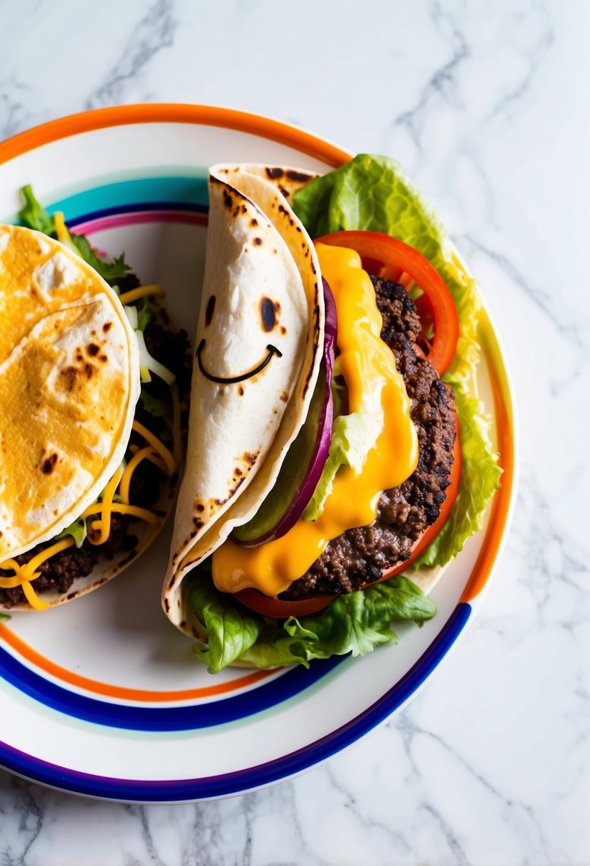 The Taco Cheeseburger is a fun twist on two favorites: tacos and cheeseburgers. This recipe is easy and great for kids to help with in the kitchen.