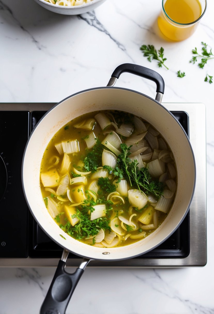 Start by melting butter in a pot over low heat. Then, add sliced onions and a pinch of sugar. Cook until the onions are soft and caramelized, about 15-20 minutes.