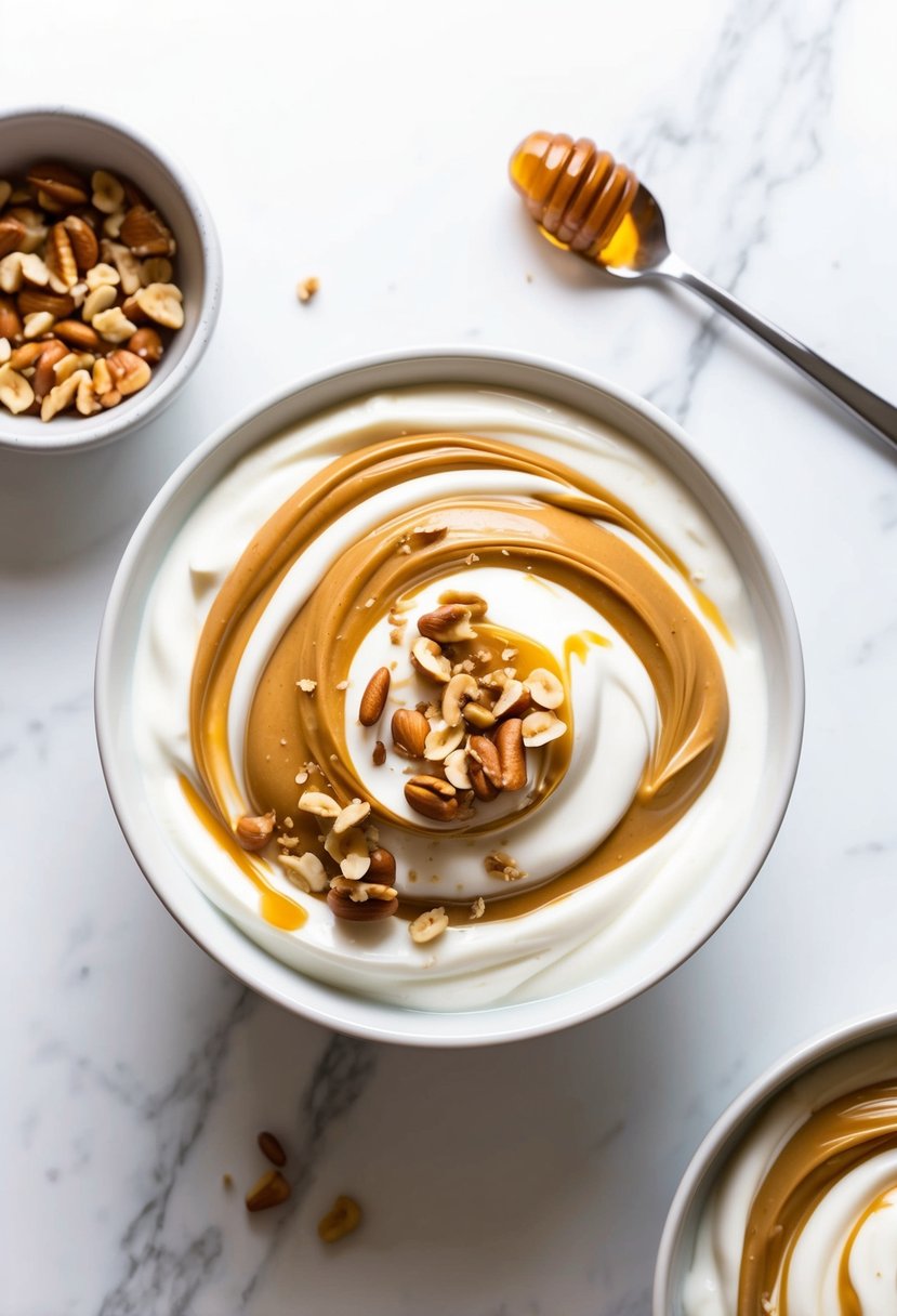 To make it, start by mixing plain Greek yogurt with peanut butter. You can add honey for sweetness and a dash of cinnamon for flavor. This simple blend creates a creamy and satisfying snack.