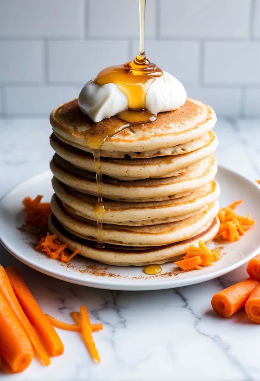 Greek yogurt carrot cake pancakes are a fun twist on a classic breakfast. They offer a delicious taste while packing in protein and nutrients. You’ll enjoy the warmth of spices like cinnamon and nutmeg as you bite into these fluffy pancakes.
