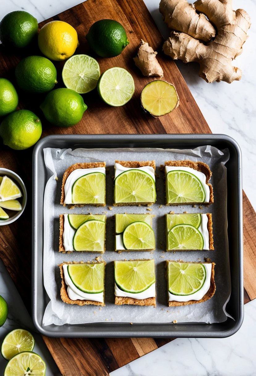 Lime & ginger bars are a delightful treat that offers a zesty flavor. The combination of lime and ginger creates a refreshing and slightly spicy taste. These bars are perfect for dessert or a snack.