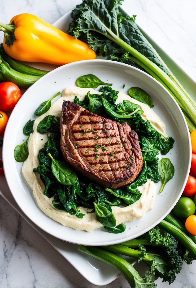 A New York strip steak paired with creamed greens makes for a delicious meal. The rich flavors of the steak mix well with the creamy texture of the greens. You can use spinach or collard greens for a great taste.