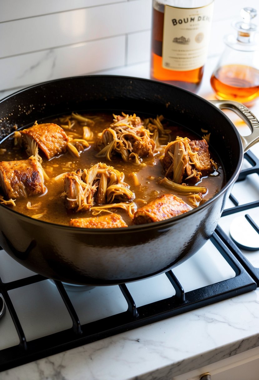 For a delicious pulled pork dish, try making it in a Dutch oven. This method gives your pork a great flavor and tender texture. Using bourbon adds a rich taste that complements the meat well.