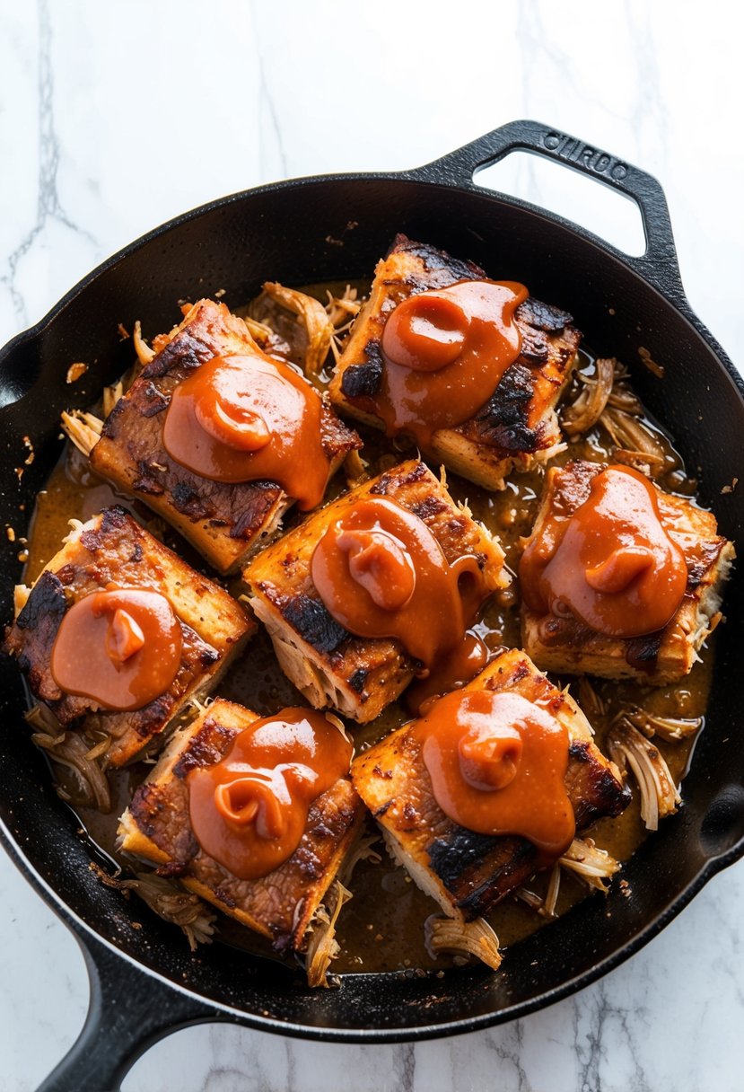 After browning, add bourbon along with your favorite BBQ sauce. This helps create a tasty glaze.