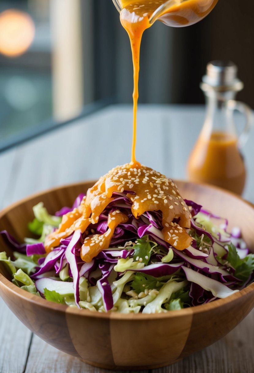 For the dressing, mix soy sauce, sesame oil, and a splash of rice vinegar. This brings a tangy flavor that pairs well with the veggies.