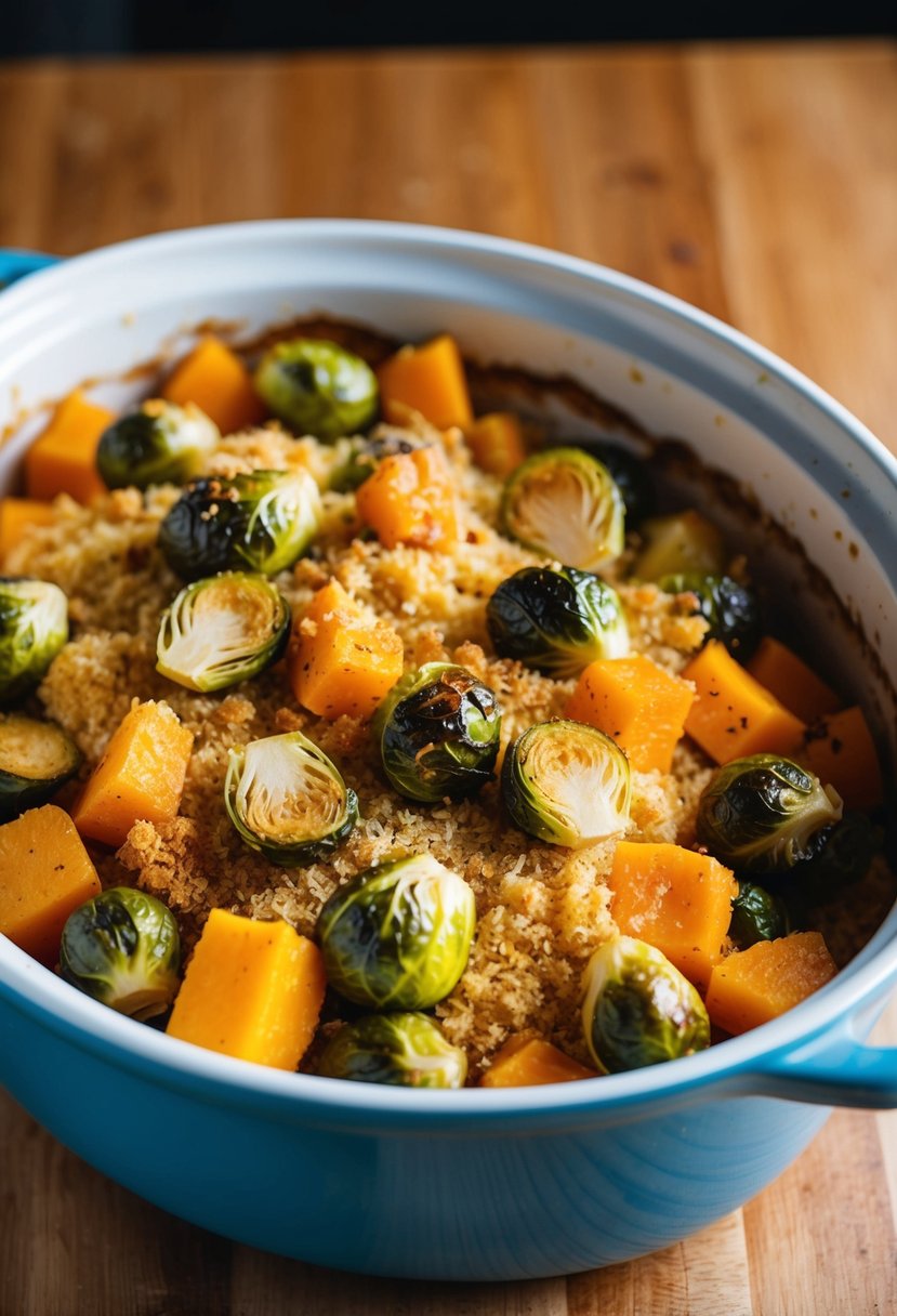 Start by roasting Brussels sprouts and butternut squash until they’re tender. Add some cheese for creaminess and top with breadcrumbs for a crunchy finish. Season with herbs to bring out the flavors.